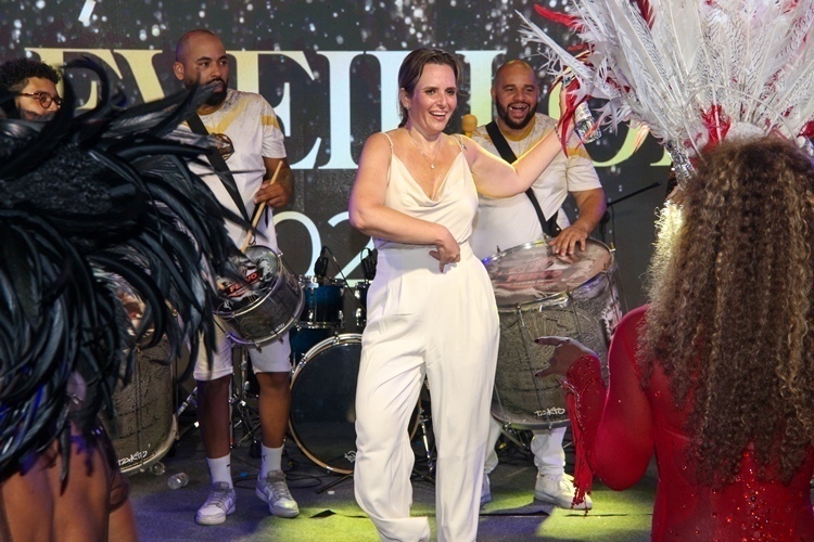 A contagem regressiva para a virada foi emocionante e, à meia-noite, a tradicional queima de fogos encantou todos os presentes, iluminando a noite e celebrando a chegada de um novo ano.